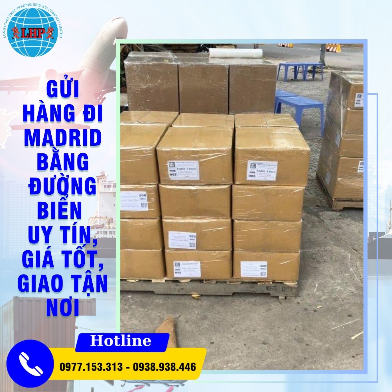 Tại Madrid, LHP Express phối hợp cùng đối tác địa phương giao hàng tận tay người nhận. Quý khách có thể theo dõi lộ trình giao hàng qua mã tracking. Gửi Hàng Đi Madrid Bằng Đường Biển Uy Tín, Giá Tốt, Giao Tận Nơi.