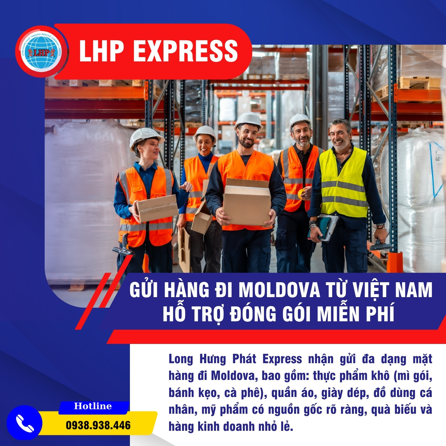 Giá gửi hàng đi Moldova phụ thuộc trọng lượng, kích thước, loại hàng và hình thức vận chuyển. LHP Express báo giá trọn gói, minh bạch, không phí ẩn; hỗ trợ đóng gói cơ bản miễn phí và nhiều ưu đãi cho khách gửi số lượng lớn. Nếu khách hàng đang có nhu cầu liên hệ ngay: Hotline: 0938938446 (Ms. Hạnh) để được hỗ trợ báo giá tiết nhất!
